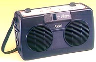 to batteries - compact and portable. External speaker socket ( 1/8 in. headphone