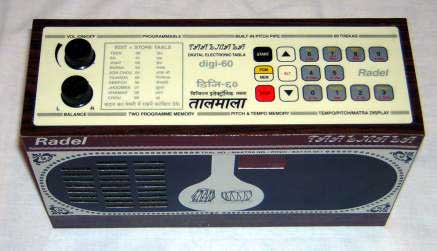 The Taalmala digi-60 Electronic tabla (available in Digi-60 and Digi-60 "s" or "Stereo" model) is a state-of-the-art digital musical instrument that has been designed by the pioneers in Indian electronic musical instruments. This instrument has a natural tabla sound along with sophisticated features unmatched by any other model of electronic tabla. The Digi-60 "Stereo" model features stereo sound for realistic audio quality.